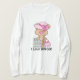I love this shirt. I had written to the artist asking her if this picture was available on a shirt, and she wrote me back telling me where I could find the shirt. These shirts can be custom made to have a different saying. I loved this saying and went with it. The artist wrote me back later to tell me that she had seen my order go through. How's that for service? Pretty special. It's just as displayed. Perfect!