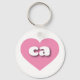 This key chain features a cool pink heart containing bold, rounded, white lower case letters ca, a playful version of the abbreviation for the state of California.