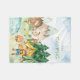 Add a cute custom touch to your little boy or girl's bedroom or nursery with this adorable woodland animal camping fleece blanket. Blanket has a fox taking a picture, a bear carrying a sleeping bag, and a rabbit looking at a butterfly. The animals are in the mountains at a campsite with tents, trees, and a pond. Text says "I love Camping," and the "I love" and first name fields may be edited or removed per your preference.