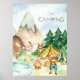 Add a cute custom touch to your little boy or girl's bedroom or nursery with this adorable woodland animal camping wall poster. Poster has a fox taking a picture, a bear carrying a sleeping bag, and a rabbit looking at a butterfly. The animals are in the mountains at a campsite with tents, trees, and a pond. Text says "I love Camping," and the "I love" and first name fields may be edited or removed per your preference.