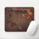 Yummy mousepad features a rich melting edge of chocolate over a deep brown background of chocolate leaves and butterfly. Text says I Love Chocolate.