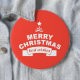 Eye-Catching Design: The combination of the red background and white text makes this button a striking accessory for holiday gatherings.