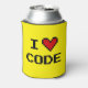 I love code can cooler for computer programmers, software engineer, web developer, internet designer etc. Bright yellow beverage holder with pixelated heart and text. Cute novelty gift idea for friends, coworker, husband, wife, employee, company boss, business partner, start up, son, dad etc. Office humour party supplies and geek accessories. Cosy pixel art icon with custom text. Customisable background colour.