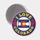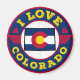 I Love Colorado State Map and Flag. Taking its inspiration from the state flag, this design features a blue, red and yellow colour scheme, plus red hearts. This frames the state flag, inside a silhouette of the state map. With cool distressed typography featuring the phrase 'I LOVE COLORADO'.