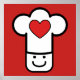 Illustration of a cook with a red love heart on their hat. Background colour can be changed.