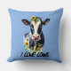 I love cows! A cute, funny cow throw pillow, featuring a black and white Holstein wearing a bright yellow sunflower on its head. This floral farm animal design adds a charming rustic touch to any farm themed kids room or as a funny novelty gift for an adult who just loves cows.
