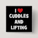 I Love Cuddles And Lifting Weights - Funny Novelty 15 Cm Square Badge