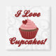 Cute red and pink design features a yummy chocolate cupcake in a pink paper wrapper, with pink icing and a red heart candy pick. Text says "I love cupcakes". Perfect for the cupcake shoppe small business owner, baking enthusiast or mum who loves to cook tasty sweet treats and desserts.
