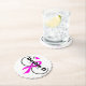 White coasters with black logo, pink ribbon and "I Love" symbol at top.