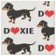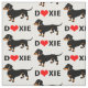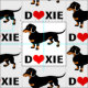 Cute dachshund pattern featuring a black and tan smooth coated Dachshund and the word Doxie with a heart at the centre.