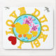 A mother duck and two yellow ducklings swim in a pretty blue pond amonst the water liles and colourful yellow text with a red heart reads "I Love Ducks!" on these cute duck T-shirts, sweatshirts, bodysuits, mugs, stickers, tote bags, and other items!