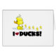 A cute duck design on I Love Ducks T-shirts, bodysuits, mugs, cards, stickers, tote bags, and other duckie items featuring a mother duck and her ducklings.