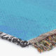 A quality printed throw has its advantages. This is a much finer weave throw than its loopier cousins, and though lighter, it is worth the investment for custom room accessorizing. The back is much prettier than the typical brown, and the fringe on the long sides very vivid, the selvage nicely done. Before photographing, I washed the throw in cold water, delicate, with a thicker woven throw the same size. On tumble dry low, this throw was dry in half the time as the other. This is a very practical quality if you use throws for furniture covers or to wrap up in frequently. The sleekness of the fabric makes it a great layer for accenting or protecting without the feeling of sitting on too much stuff. Perfect for napping or when you feel a light chill coming on. The color printing is beautiful and on this fabric, matched the design and color of my Photoshop image. This is an advantage for blending room fabrics and colors. The fringe on the short sides prints the colors from the design image and therefore varies from the side fringe. I streaked a white fractal line through the plaid pattern to give the illusion of weaving. This printed as crisp as an illusory thread, and put some white in the short side fringe, showing another advantage of print vs loomed- for artistic purposes, line lines, detail, and color integrity can be planned and preserved. My loomed throws have color limitations and more of a needlepoint texture. Print throws reproduce an exact image. The throw felt a little stiff straight out of the package, but this went away in the first delicate wash. Of course I searched the wash water for ink or bleeding and there was none.