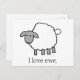 This postcard features a really cute cartoon sheep with the text "I love ewe" included. Makes a funny and whimsical gift for the one "ewe" love!