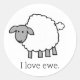 This sticker features a really cute cartoon sheep with the text "I love ewe" included. Makes a funny and whimsical gift for the one "ewe" love!