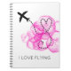 I Love Flying Heart Aeroplane Pink Clouds Fun Notebook