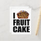 True, if you get a fruitcake and nobody wants any (what kind of fruit is that anyway?), then it would probably make a good doorstop after it sat around a while. (And you can't throw out a gift from Great-Aunt Opal.) But consider this: Some people actually like fruitcake. A lot. So if you're a fruitcake lover, you don't need to keep it a secret anymore! Tell everyone you know (here are some postcards) This even has a cross-section photo of a loaf of fruitcake in the design. Is your mouth watering yet?