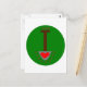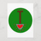This postcard features an image of a spade with a heart on it and text that says “I love gardening”. The spade has dug the writing into a nice green circular lawn.