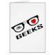 Stereotypical black rimmed glasses, taped together in the centre with white tape. A picture of the eye is located on one side of the glasses to symbolise the word, “I.” A simple red heart is located on the other side of the glasses to symbolise the word, “Love,” while the word, “Geeks,” is actually written below the glasses, in all capital letters in black modern, clean font.