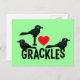 Love grackles? You're not alone (though it may seem that way sometimes). These big black birds love to flock together and make noise. True party animals, really. This cute original design reads "I Love Grackles" and features cartoon images of the Common, Boat-tailed, and Great-tailed varieties. You can customise this gift. Move the design around, change the background colour or style, add text or images -- make it your own!