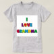 Text t-shirts, bodysuits, mugs, cards, stickers, tote bags, bodysuits, and more with bright multicolors text that reads I Love Grandma.