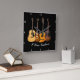 I LOVE GUITARS--USE ANY DARK COLOR FOR BACKGROUND----The guitar is a fretted musical instrument that usually has six strings.[1] It is typically played with both hands by strumming or plucking the strings with either a guitar pick or the finger(s)/fingernails of one hand, while simultaneously fretting (pressing the strings against the frets) with the fingers of the other hand. The sound of the vibrating strings is projected either acoustically, by means of the hollow chamber of the guitar (for an acoustic guitar), or through an electrical amplifier and a speaker.