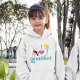 I Love Gymnastics. A pretty gymnastics girl gift with adorable teal text in between two tumbling girls and a beautiful pink heart. A cute gymnast kids hoodie.