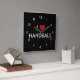 I Love Handball fridge magnet. White lettering and red heart on black background