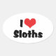 I Love Heart Sloths Oval Sticker