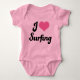 This cute I love surfing design with a heart makes a great gift idea for a fan of surfing. This answers the question of where can I find or buy a surfing t shirt.
