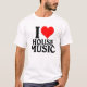 The "I love house Music" t-shirt: What's House Music anyway? House music is the direct descendant of the 1970s dance style of Disco, which blended soul, R&B, funk, salsa, rock and pop with a progressive, pro-diversity message. House music also incorporated other influences, such as New Wave, Reggae, Euro-Synth Pop, Industrial and Punk as well as the emerging Rap and Hip-Hop styles. House music DJs experimented with new editing techniques and electronic instruments, such as "remixing," "sampling". House music was developed in the houses, garages and clubs of Chicago and Detroit, and it was produced for local club-goers in the "underground" club scenes, rather than for widespread commercial release. As a result, the recordings were much more conceptual, longer than the music usually played on commercial radio. House, techno, electro and hip-hop musicians used analogue synthesizers and sequencers to create and arrange the electronic elements and samples on their tracks. House music "humanised" of the new electronic instruments by combining live traditional instruments and percussion and soulful vocals with preprogrammed electronic synthesizers and "beat-boxes".