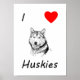 Do you enjoy Huskies? Show everyone with this I Love Huskies design in the popular I heart style featuring a husky illustration.