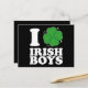 I Love Irish Boys Shamrock Heart St Patrick's Day Postcard