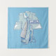 A funny design for anyone who loves ironing, or who ironically does not like it. This illustration has a blue iron standing in front of a folded and ironed blue shirt.