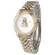 The watch is very nice, the picture is great and the watch looks like quality. The only problem I am having with it is that it is a little too large, and I also can't figure out how to open the clasp. No directions came with it. Very good. The printing is perfect and the watch keeps good time.