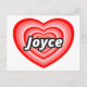 A red heart with the name Joyce in the centre. I love Joyce. I heart Joyce. I love you Joyce. A gift for someone who loves Joyce. A valentine for Joyce. Happy birthday Joyce. I'm in love with Joyce. Hello, my name is Joyce.