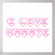 Your Karate girl will enjoy this cute Pink Hearts I Love Karate Poster Print. This girly custom martial arts poster makes a unique feminine martial arts gift for a birthday, holiday or belt rank promotion test for your daughter, sister, wife, mum , aunt or girlfriend. Customise it and change the size if desired.