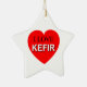 I love kefir. Kefir is a natural probiotic drink made from milk. Red heart image with text.