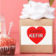 I love kefir. Kefir is a natural probiotic drink made from milk. Red heart image with text.