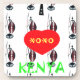 The image showcases a repeating pattern of stylised bronze Maasai figures holding Maasai shields and spears, arranged in a grid-like format. At the centre, a bold red heart with "XOXO" written on it adds a whimsical touch. Below the heart, the word "KENYA" is prominently displayed in green, creating a balanced and focused composition that highlights both the cultural elements and the message of affection.