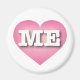 This magnet features a pink heart with a white-washed center containing the bold, white, upper case letters ME, the official abbreviation for Maine, the pine tree state.