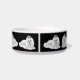 Original fine art design of fluffy white Maltese dogs by artist Carolyn McFann of Two Purring Cats Studio printed on a quality dog food bowl.