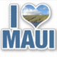 I love Maui Hawaii sticker with a cute heart shaped photo of the blue Hawaiian ocean and green mountains. Beautiful coastal waters make me happy on summer vacation. Cute keepsake photography design with windmills on a hill.