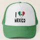 Trucker hat with a heart shaped Mexican flag instead of the word LOVE. Design reads I LOVE MEXICO. The flag is green, white, and red with an eagle in the centre. Fun favour for Cinco de Mayo celebrations, or any special occasion.