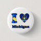 Ik houd van Michigan button. Tekst: I heart Michigan Afbeelding: hart met de vlag van Michigan.