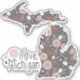 Playful and fun! I Love Michigan typography with a silhouette of Michigan filled with a beautiful floral pattern design from Studio Posies in pink, brown and black. You will find this design on a variety of products from home decor to accessories. Design by the Michigander.