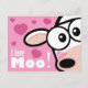 Graphic and modern I Love You postcard design featuring a bashful cow and the words 'I Love Moo!'. Ideal if you have more than one Valentine! Design © 2009 Lisa Marie Robinson
