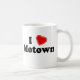 I love Motown! Are you from Detroit, Michigan? Do you have a friend or family member who loves Detroit, Michigan? If so, this "I Love II" mug that shows love for Motown is exactly the gift that you're looking for! The design features the letter "I" in black lettering with a red heart on the top and "Motown" in black lettering on the bottom.