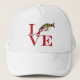 Tying into a monster muskie is an experience of a lifetime. Catch one and you are hooked. Full colour life like image of a giant muskie replacing the "O" in Love.