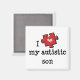 Show your love for your child with our I Love My Autistic Son autism awareness design for moms and dads with a red puzzle piece and pink heart.